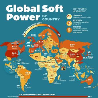 2026年全球软实力排名,美国、中国、日本前三